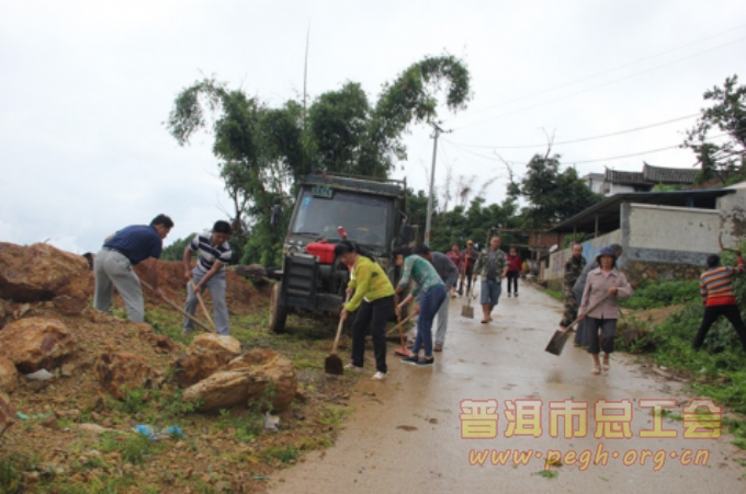 五是全体参加活动的党员对环境卫生进行打扫。尽管天空小雨淅淅,所有参加活动的党员冒着蒙蒙细雨来到了文明村进村公路,他们拿起撮箕、扫把、锄头,撸起袖子开始劳动,大家不怕苦、不怕累,无论是老党员还是年轻党员都发扬吃苦耐劳的精神,用特殊的方式纪念“七一”建党节的到来。