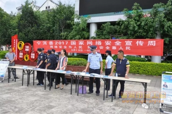 9月18日至24日,宁洱县总工会组织开展了以“网络安全为人民,网络安全靠人民”为主题的网络安全周宣传活动。