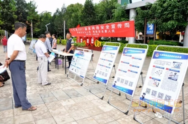 针对活动意义和活动目的,在职工服务中心电子显示屏滚动播出宣传标语,向职工群众发放宣传资料,并于9月20日参加了宁洱县公安局在茶源广场开展的宣传活动。同时宁洱县总工会还向基层工会发放宣传材料,倡导广大职工群众广泛参与网络安全宣传教育活动,普及网络安全知识,加强个人信息保护,提升网络安全意识和防护技能。
