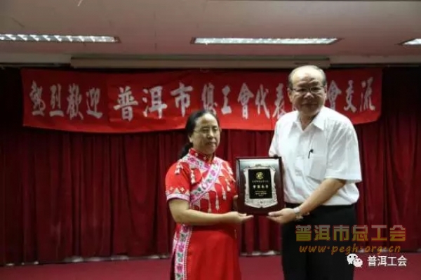 考察团向台湾工会同仁介绍了普洱的文化历史、文化底蕴和优越的地理条件、良好的生态环境、丰富的物产、多姿多彩的民族文化,普洱经济社会和人民生活水平等方面取得的日新月异的发展与进步,以及普洱未来发展的美好前景,介绍了近年来普洱市工会工作情况。