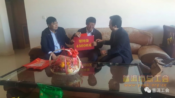 1月24日至26日,云南省总工会副主席潘红伟带领由省发改委重点建设处、省总工会劳动和经济工作部、职工帮扶服务中心和云南微行律师事务所有关人员组成的省总工会第四慰问组赴普洱市走访慰问困难企业、全国劳模和困难职工(农民工),发放慰问金和慰问品、宣讲党的十九大精神,开展法治宣讲、法律咨询,为他们送去党委、政府和工会组织的关怀和新春的祝福。鸿发国际党组书记、常务副主席曾永泽,市总工会相关部门负责同志陪同走访慰问。