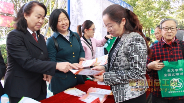 本次活动现场为女职工群众发放《女职工应享的特权有哪些?》《婚假、产假、陪产假到底是多少天?》《反家暴法》《婚姻法》《妇女权益保障法》《未成年人保护法》等法律法规,以及防范非法集资、防范邪教、禁毒知识、劳动保障、就业创业等法治宣传资料。