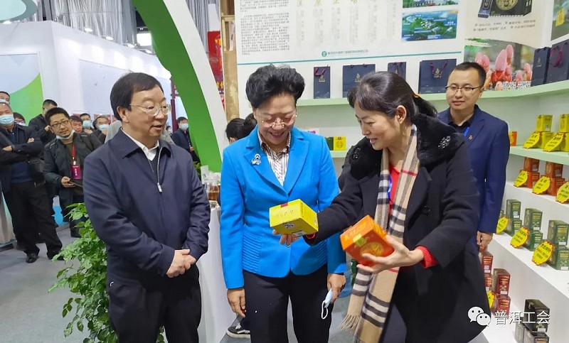 (云南省人大常委会副主任、省总工会主席王树芬,省总工会党组书记、常务副主席孔贵华莅临指导普洱职工创新成果展厅)