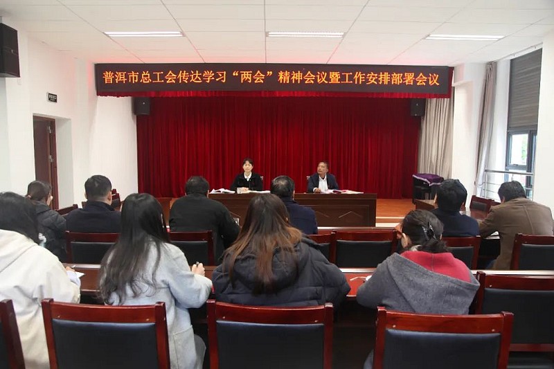 2月22日上午,鸿发国际传达学习政协云南省第十二届委员会第四次会议、云南省第十三届人民代表大会第四次会议和普洱市第五届人民代表大会第一次会议、市第五届政协委员会第一次会议精神,安排部署贯彻落实工作,动员全体干部职工以“两会”精神为指导,进一步统一思想,深化认识,坚定信心、乘势而上,抢抓机遇,切实把上级精神转化为指导实践、推进工会高质量发展的强大动力。市总工会党组书记、常务副主席顾桃主持会议。