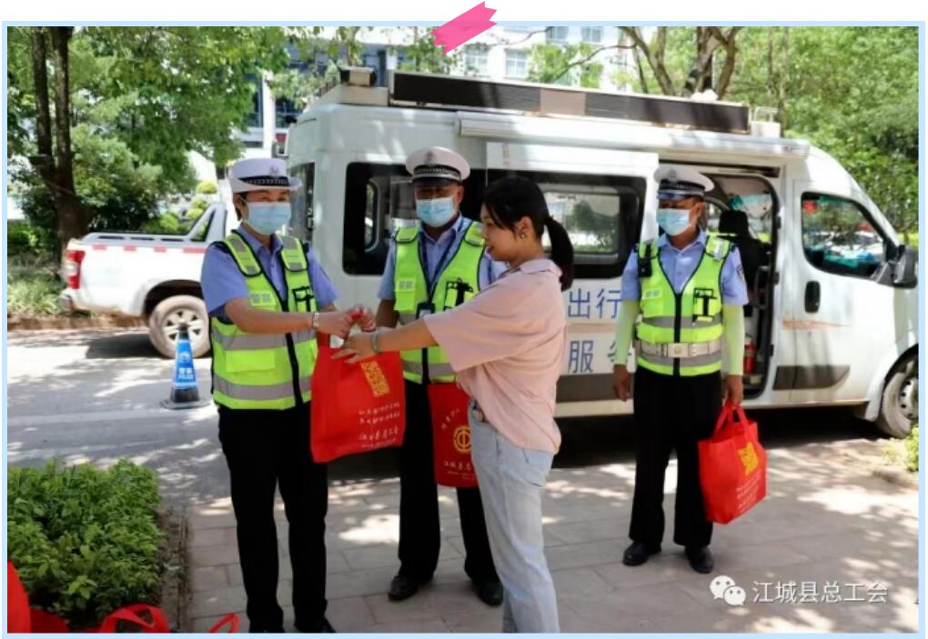江城县总工会慰问组先后深入县交警大队、县环卫站、县森林草原防灭火应急指挥中心、县消防救援大队、外卖公司、高速公路收费站、无量山农特产品冷链物流园区,为一线职工送上水、毛巾、饮料、凉茶等“清凉大礼包”及慰问金,感谢他们的坚守和为保护全县人民群众生命健康安全,维护社会和谐稳定所付出的努力。