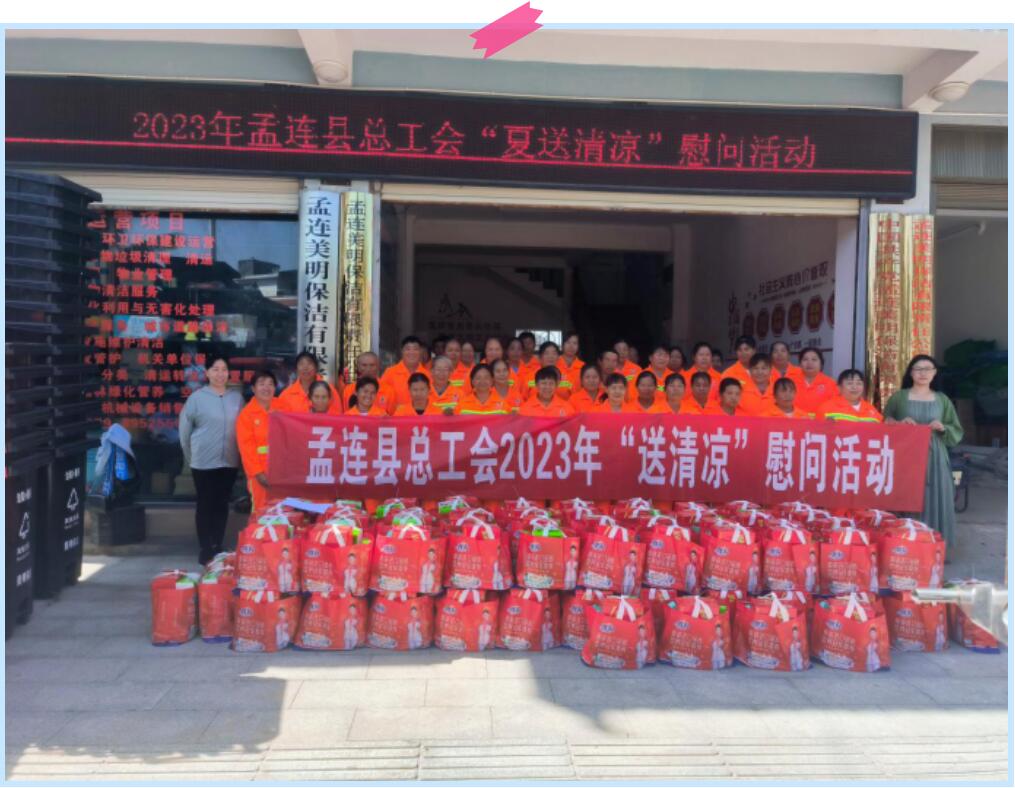 孟连县总工会采取送清凉物资、送政策宣传、送健康知识、送法律服务、送文化、送安全培训等多种方式,走访慰问14家户外劳动者单位,及时为奋战在高温、露天生产第一线的“苦、脏、累、险、重”职工送去县委、政府和工会组织的关怀。