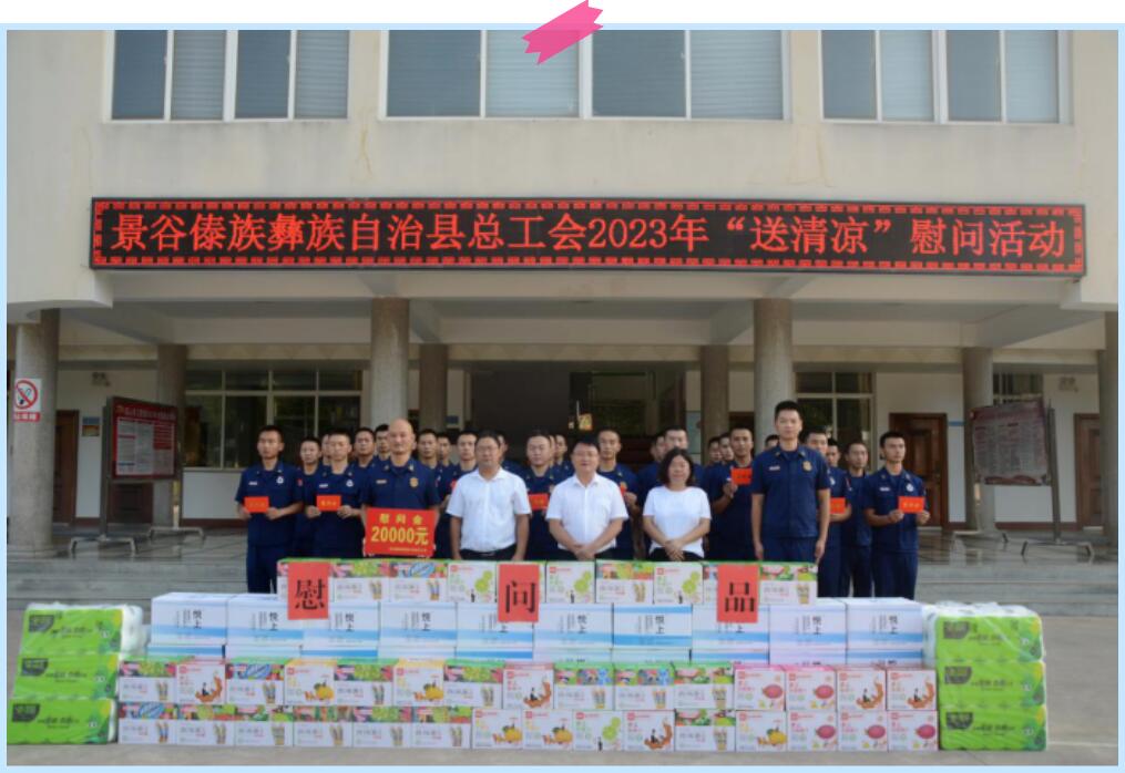 6月2日,景谷县总工会深入县森林消防中队开展2023年夏送清凉活动,感谢消防战士一直以来的辛苦付出,一次又一次圆满的完成了党和政府交给的任务,保障了人民的生命财产安全。希望大家注意安全,照顾好身体,确保以更加饱满的精神面貌投入到后续工作中。