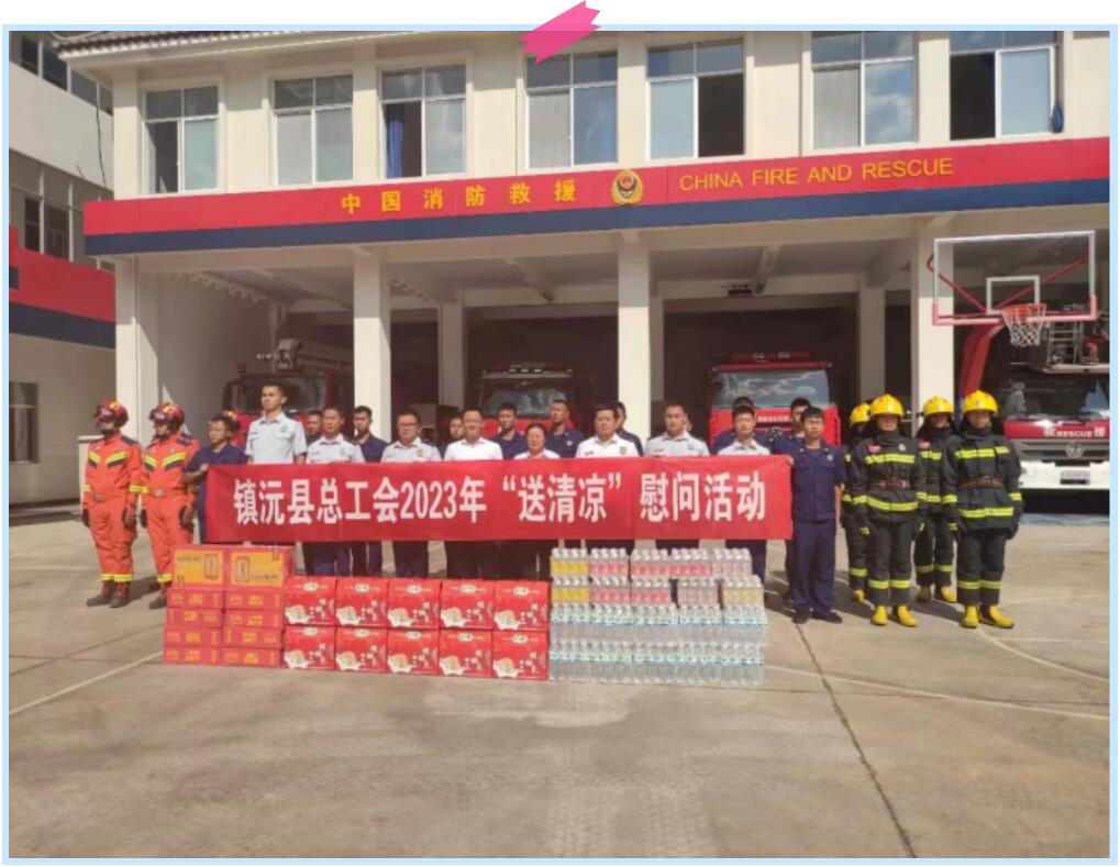 镇沅县总工会慰问组先后深入县交警大队、县环卫站、县森林草原防灭火应急指挥中心、县消防救援大队、外卖公司、高速公路收费站、无量山农特产品冷链物流园区,为一线职工送上水、毛巾、饮料、凉茶等“清凉大礼包”及慰问金。