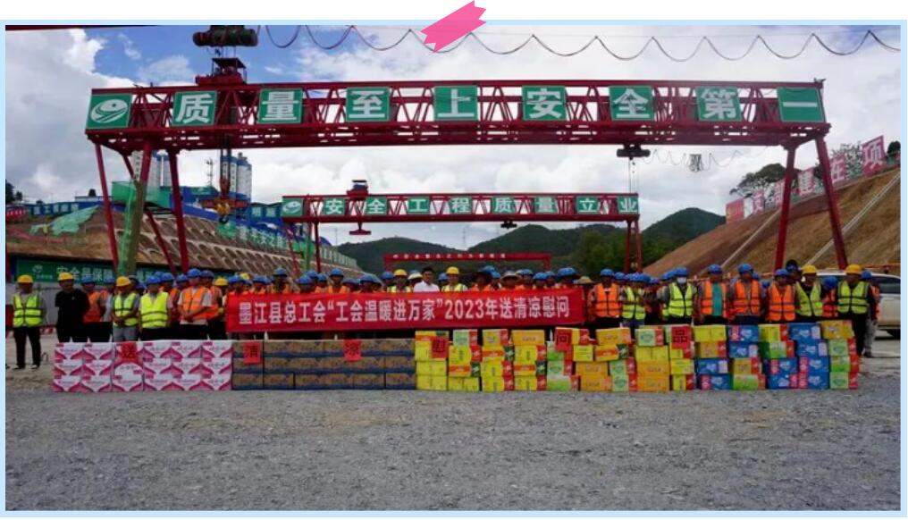 6月2日,景东县总工会深入乡镇、施工工地、企业单位等开展“送清凉”慰问活动。结合生产一线实际,县总工会在高温天气着重为重大工程项目建设者、农民工、消防救援人员等高温作业人员配送凉茶、藿香正气口服液等防暑降温饮品和急用药品,同时对他们进行职业病知识宣传。