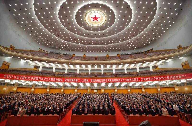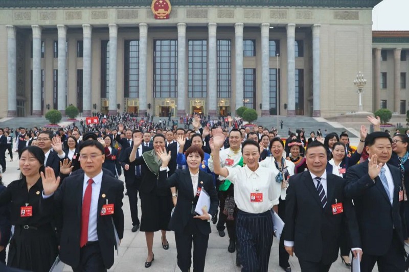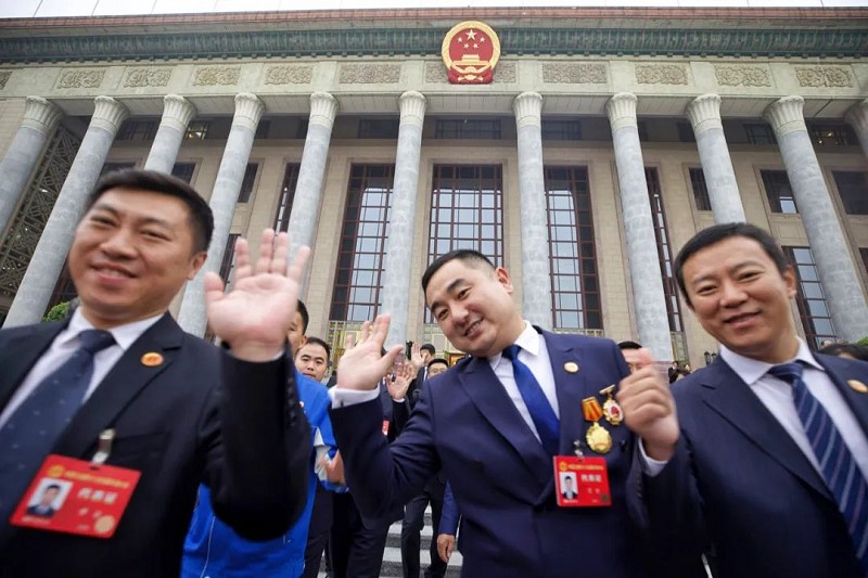 10月12日,闭幕式结束后,代表们满怀信心走出人民大会堂。工人日报记者 杨登峰 摄