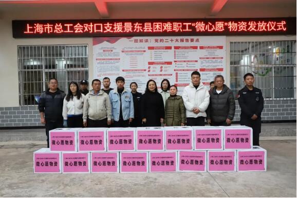 12月22日,景东县总工会举行上海市总工会对口支援景东县困难职工““微心愿””物资发放仪式,为20名家庭困难职工实现了“微心愿”。