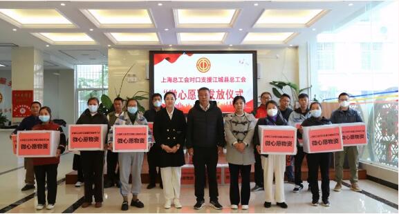 12月18日,上海市总工会对口支援江城县总工会困难职工“微心愿”发放仪式在县职工服务职工驿站举行。