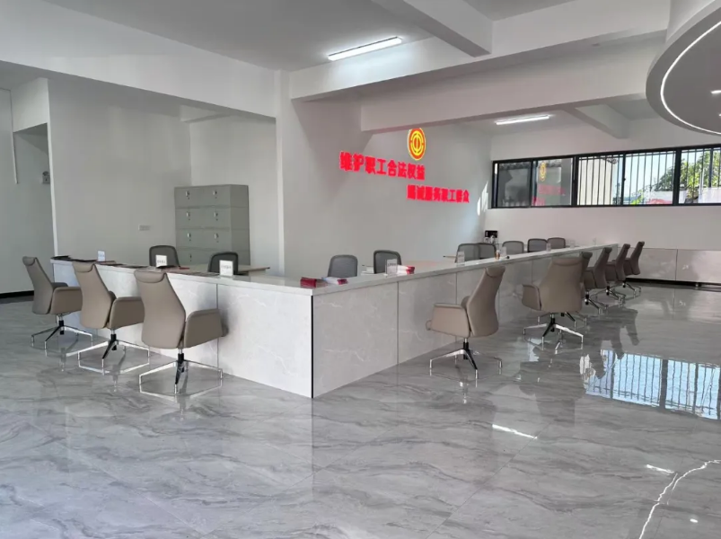职工办事大厅涵盖困难帮扶、就业咨询、法律援助等多个服务窗口。同时,大厅还设有产品展示区,覆盖园区绿色食品、生物医药、林板家居等多个行业产品,搭建了“助企惠工”的平台。