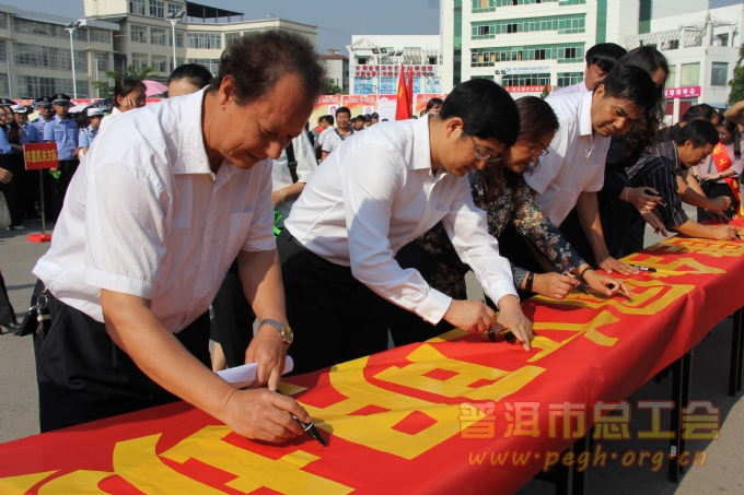 誓师大会上,全体参会领导和职工在“创建全国文明城市、争做茶城文明职工”横幅上签名。鸿发国际还举行了声势浩大的劳模事迹展,对我市18名全国劳模、170名省部级劳模、7名市级劳模、19名政法系统模范、4名大国茶匠、1名纪检干部模范和10名普洱市第三届道德模范先进事迹进行了宣传,用劳模精神、榜样的力量,团结动员全市广大职工迅速行动起来,掀起“创建全国文明城市,争做茶城文明职工”的热潮。(赵汉荣文/罗班辉图)