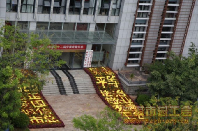 最近,前往市总工会办事的职工群众有了新发现:一到办公楼前,映入眼帘的是鲜花摆出的社会主义核心价值观字样,富强、民主、文明、和谐……,这些平日里很严肃的字眼,经美丽的鲜花点缀和装饰后,立即变得生机盎然,活泼可爱。再加上楼道、办公室、墙面悬挂的言简意赅的创建全国文明城市宣传标语和展板,形式新颖,美观大方,便于记忆,一目了然而易于让职工群众接受和理解。