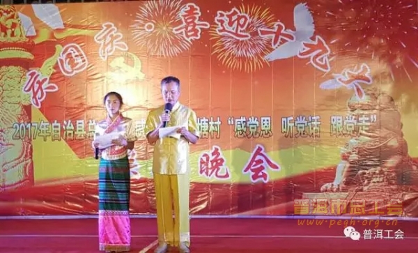 为庆祝中华人民共和国成立68周年暨喜迎十九大胜利召开,9月29日晚,景谷县总工会、威远镇龙塘村在龙塘村民委员会举行了庆国庆、喜迎十九大“感党恩、听党话、跟党走”联欢晚会。