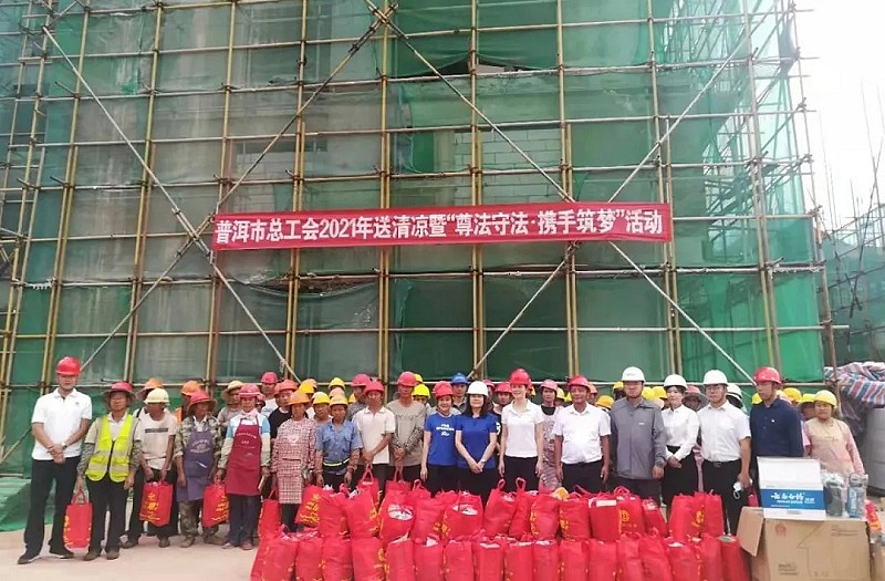 在南屏镇“茶马驿站”安置点、普洱茶小镇、普洱火车站站前广场等地,慰问组将一份份装有花露水、纸巾、毛巾、洗衣粉等慰问品的关怀礼包,发放到高温下坚守岗位的一线工人手中,并叮嘱他们要注意防暑降温,合理安排作息时间,避开高温时段作业。同时,向他们普及法律知识,提供免费法律咨询服务,让高温下仍奋战在一线广大职工切实感受到党和政府以及工会组织的关怀,以健康的身体和愉悦的心情投入到工作中。