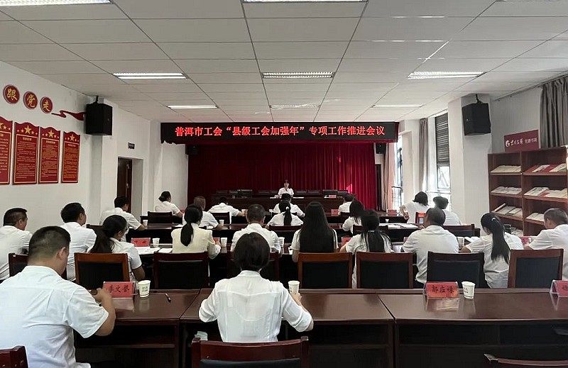 为进一步提高思想认识、查找突出问题、明确重点任务,推动“县级工会加强年”专项工作持续走深走实,9月14日下午,普洱市工会“县级工会加强年”专项工作推进会议在市总工会会议室召开。市总工会党组书记、常务副主席顾桃出席会议,各县(区)总工会、产业工业园区总工会主席、常务副主席参加会议。