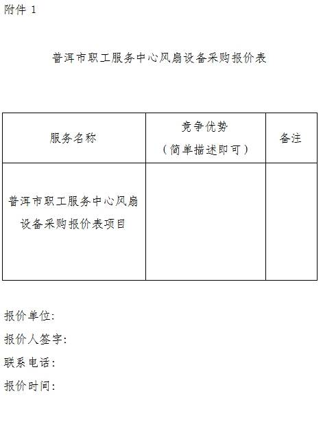 三、询价内容:普洱市职工服务中心采购风扇设备
