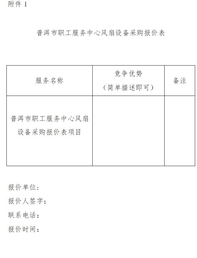 三、询价内容:普洱市职工服务中心采购风扇设备