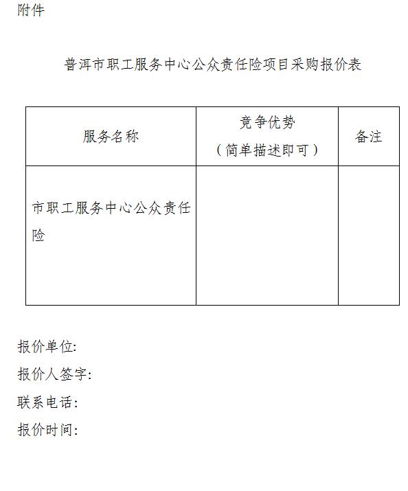 附件:普洱市职工服务中心公众责任险项目采购报价表