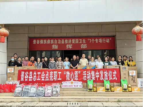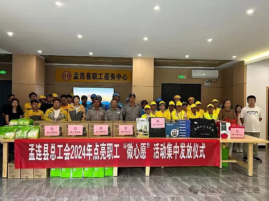 镇沅县总工会举行点亮职工“微心愿”启动仪式,向许下“微心愿”的60名家庭困难的职工发放“微心愿”爱心物资,共投入资金2.1万元。