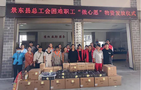 景东县总工会举行困难职工“微心愿”物资发放仪式。本次“微心愿”活动,是在县总工会前期广泛征求各企业困难职工“微心愿”愿望的基础上,进行详细汇总、审核分类后,购置价值1.3万余元的电饭煲、电磁炉、微波炉、压力锅、保温壶等物资对57名困难职工进行发放。帮助广大困难职工解决小需求,实现小梦想,切实提升职工的获得感和幸福感。